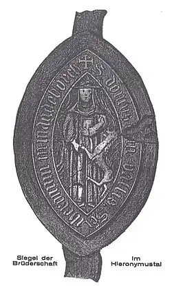 Siegel der Brüderschaft aus dem Jahr 1489, mit einer Darstellung des Heiligen Hieronymus