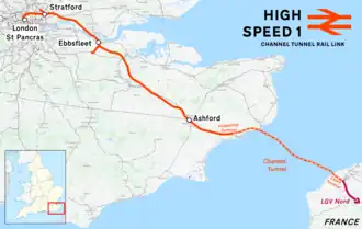 High Speed 1 (HS1), ursprünglich als Channel Tunnel Rail Link (CTRL) bezeichnet, ist eine 108 km lange Schnellfahrstrecke, die London mit dem Eurotunnel unter dem Ärmelkanal verbindet und eine Geschwindigkeit von 300 km/h zulässt. Die Strecke ist der erste größere Eisenbahnneubau in Großbritannien seit mehr als hundert Jahren und ersetzt die alte Route durch die Grafschaft Kent, auf der die Eurostar-Hochgeschwindigkeitszüge mit maximal 100 mph (160 km/h) unterwegs waren.