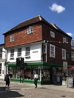 Das dreigeschossige Haus entstand im 16./17. Jahrhundert in Fachwerkbauweise und wurde im 18. Jahrhundert baulich verändert. Nach Osten zur High Street sind die Fassaden der oberen Geschosse, nach Süden zur Crane Street nur des obersten Geschosses mit Schindeln verkleidet. Das erste Obergeschoss ist auf seiner Südseite gemauert und weiß gestrichen. Die Fenster gehen zum Teil auf das 18. Jahrhundert zurück. Im Erdgeschoss ist ein Ladengeschäft eingerichtet.