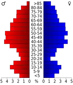 Auf das gesamte County bezogen setzte sich die Bevölkerung zusammen aus 19,9 Prozent Einwohnern unter 18 Jahren, 4,1 Prozent zwischen 18 und 24 Jahren, 24,5 Prozent zwischen 25 und 44 Jahren, 31,2 Prozent zwischen 45 und 64 Jahren und 20,4 Prozent waren 65 Jahre alt oder darüber. Das Durchschnittsalter betrug 46 Jahre. Auf 100 weibliche Personen kamen 97,8 männliche Personen. Auf 100 Frauen im Alter von 18 Jahren oder darüber kamen statistisch 96,5 Männer.