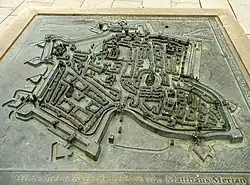 Im Dreißigjährigen Krieg wurde Hildesheim mehrfach belagert und besetzt, so 1628 und 1632 durch kaiserliche, 1634 durch braunschweigisch-lüneburgische Unionstruppen. Parallel zum wirtschaftlichen Niedergang der Stadt wuchs der Einfluss der Welfen. 1711 musste Hildesheim eine hannoversche Garnison aufnehmen. 1772 endete die eigene Münzprägung der Stadt.[34] 1796/97 fand in Hildesheim der Hildesheimer Kongress der norddeutschen Reichsstände statt.