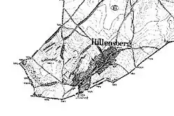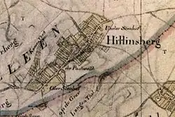 Hillensberg ist ein zweizeiliges, beidseitig bebautes Straßendorf am unteren Berghang.