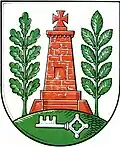 Das Ortswappen symbolisiert ein Ehrenmal, welches man 1921 am westlichen Ortsrand für die im Ersten Weltkrieg gefallenen Dorfbewohner aufgestellt hat.