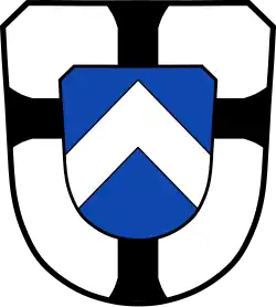 Blasonierung: „In Silber ein durchgehendes schwarzes Tatzenkreuz, belegt mit einem blauen Schildchen, darin ein gesenkter, silberner Sparren.“[5] |