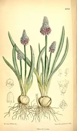 Himmelblaue Traubenhyazinthe (Muscari azureum), Illustration. | ||||||||||||