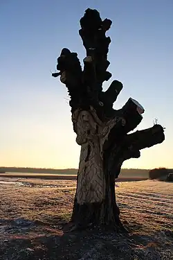 Nachdem bei einem Sturm im November 2015 ein acht Meter langer Ast aus der Krone gebrochen und zu Boden gestürzt war, wurde endgültig das Ende des von einem Pilz Phytoptora befallenen und zu weiten Teilen abgestorbenen Baumes beschlossen. Diesmal gab es auch keine Proteste und am 14. Dezember wurden alle Äste entfernt, nur ein 5 Meter hoher Stamm sollte dauerhaft erhalten bleiben. Dieser wurde durch den Kettensägenschnitzer Jörg Bäßler zu einer Skulptur in Form eines Baumgeistes gestaltet.[5][6]
