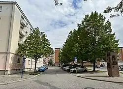 | ohne Nummer | Hauszeichenstele | 1990 von Wolfgang Roßdeutscher geschaffene Stele; siehe Hauptartikel |