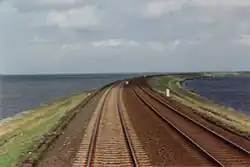 Der Hindenburgdamm ist der Eisenbahndamm, der die nordfriesische Insel Sylt an das Festland der Kimbrischen Halbinsel anbindet. Der Damm wurde am 1. Juni 1927 nach einer Bauzeit von vier Jahren eröffnet und dient ausschließlich dem Eisenbahnverkehr. Er ist Bestandteil der Marschbahn von Elmshorn nach Westerland. Ursprünglich eingleisig erbaut und später zunächst mit einer Ausweichstelle versehen, ist der Damm seit 1972[1] durchgängig zweigleisig ausgebaut. Der Damm ist insgesamt 11,3 km lang; aufgrund der später erfolgten Landgewinnung im Zuge der Eindeichungen des Friedrich-Wilhelm-Lübke-Koogs und Rickelsbüller Koogs liegen heute hiervon bloß noch 8,1 km im Bereich des Nordfriesischen Wattenmeeres.