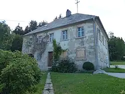 Im Ort steht ein Handwerkerhaus mit Walmdach und Eckquaderung unter Denkmalschutz.