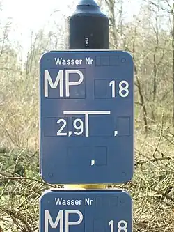 2 Abstand in Meter und Dezimeter zwischen Schild und Entnahmearmatur vom Schild nach rechts weg gemessen.