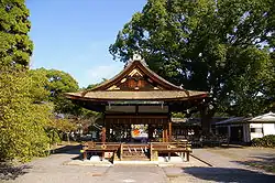 Die gegenwärtigen Bauten des Schreins stammen aus dem 17. Jahrhundert. Ungewöhnlich sind die vier Honden, eine für jeden Kami. Diese sind: