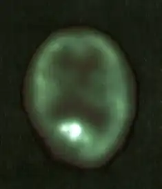 Die Positronen-Emissions-Tomographie (PET) als funktionelles bildgebendes Verfahren (sie gibt, vereinfacht gesprochen, die Stoffwechselaktivität bildlich wieder) erlaubt die Beantwortung spezieller Fragen. Eine solche wäre zum Beispiel die Unterscheidung eines lokalen Rezidivs von einer Strahlennekrose unter der Behandlung, wenn diese Differenzierung nicht aus der Kernspintomographie allein abgeleitet werden kann.[10]
