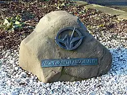 Am 5. August 2007 wurde im Park das Mahnmal Atomwaffen abschaffen des Kölner Künstlers Hannes Helmke enthüllt. . Es ist von drei Bäumen umgeben: einem Ginkgo für Hiroshima, einer Japanischen Blütenkirsche für Nagasaki und einer Schwarz-Pappel für Köln.[5] Das Mahnmal zeigt einen Origami-Kranich, der Bezug auf eine japanische Legende nimmt, nachdem jeder, der 1000 Origami-Kraniche (Sembazuru) faltet, von den Göttern einen Wunsch erfüllt bekommt. Nach dem Tod der japanischen Schülerin Sadako Sasaki, die nach dem Atombombenabwurf auf Hiroshima mit dem Falten von Origami-Kranichen vergeblich gegen ihre durch die Strahlung ausgelöste Leukämie-Erkrankung ankämpfte, sind Origami-Kraniche weltweit zum Symbol des Widerstandes gegen den Atomkrieg und Atomwaffen geworden.