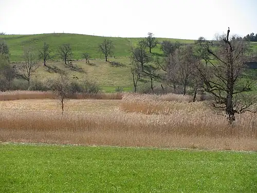 - Streuobstwiesen als wichtiges Element unserer traditionellen Kulturlandschaft und als Lebensraum für zahlreiche Tiere, insbesondere Vögel und Kleinsäugetiere. Die benachbarten Schilfröhrichtbestände bilden für einige von ihnen ein ergänzendes Nahrungsbiotop