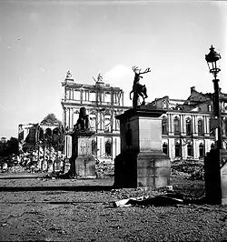 - ↑ Bei einem der beiden Schwerter an der Trophäe des Löwenpostaments fehlt der Griff.