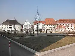 Blick über den „Platz der DSF“ zur Kurmainzischen Statthalterei (1957) -