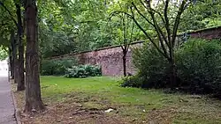 Südlich der Straße hinter dem aufgefüllten Hirschgraben steigt das Gelände einige wenige Meter an. Dort liegt ein kleiner Hügel, der sogenannte Weidenberg, wo gut 1000 Jahre lang eines der vier großen Stifte von Speyer, St. Guido, situiert war. Die letzten Mönche zogen von dort 1991 ins Pfarrhaus von St. Bernhard. Auf halber Strecke führt über den Graben eine steinerne Treppe den kleinen Hügel hoch. Durch den Durchgang in einem Stadtmauerrest können Fußgänger die St. Guido-Straße erreichen.