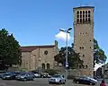 1953/54 | historisierender Sandsteinquaderbau mit freistehendem Glockenturm, 1953/54, Architekten August Josef Peter und Ludwig Ihm; bauliche Gesamtanlage mit Pfarrhaus und Rampe | weitere Bilder Fotos hochladen |