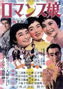- ↑ „Romantisches Mädchen“ (ロマンス娘, Romansu Musume) aus dem Jahr 1956. Morishige rechts unten auf dem Plakat.