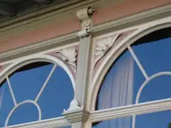 Die Caféhalle wurde an der Ostseite des Hotels etwas zurückgesetzt von der Rheingauer Straße erbaut. Zwischen zwei gemauerten Giebelwänden erhebt sich auf einem Sockel aus Backsteinen eine langgestreckte, feingliedrige Konstruktion aus Gusseisen. Zwölf hohe Rundbogenfenster gliedern die zur Straße gewandte Fassade. Die tragenden Stützen sind mit Ornamenten geschmückt.