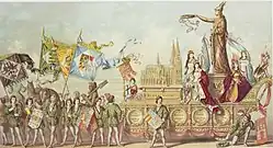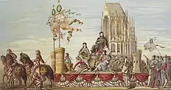 - Wagen mit der Hansekogge, Erzbischof Heinrich von Virneburg, Herzoge und Kölner Patrizier, Wagen mit dem vollendeten Domchor (Wilhelm Beckmann)
