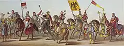 - Ritter, König Wilhelm von Holland und Kardinal Capocci mit Gefolge (Ernst Roeber, datiert August 1884)