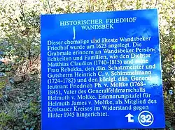 - ↑ Grabstein Helmuth James Graf von Moltke auf dem Historischen Friedhof Wandsbek