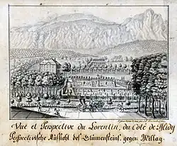 Das Blumensteingut mit seiner eindrücklichen Gartenanlage (J. P. Thiébaud, 1760)