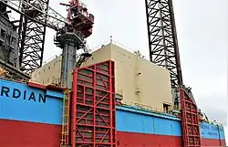 Die Maersk Guardian wurde von 2015 bis 2016 in Frederikshavn in eine Hotelplattform umgebaut.