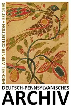 Ab 1993 ist durch die Beschäftigung mit dem Pennsylvaniadeutschen und der Arbeit an Hiwwe wie Driwwe in Zusammenarbeit mit dem Center for Pennsylvania German Studies in Millersville (PA) in Rheinland-Pfalz ein privates Archiv pennsylvaniadeutscher Literatur entstanden, das derzeit (2016) ca. 1.500 Bücher, Ton- und Videodokumente sowie einen Korpus von ca. 16.000 pennsylvaniadeutschen Schrifttexten (gedruckte Werke, unveröffentlichte Texte, Manuskripte, Briefe etc.) umfasst. Weitere Schwerpunkte liegen in den Bereichen pfälzische und pennsylvaniadeutsche Geschichte, Volkskunde und Sprache. Über die Jahre gab es immer wieder auch Schenkungen von Dritten, etwa C. Richard Beam (Millersville, PA), Werner Enninger (Universität Essen) und Heinz Helfrich (Universität Landau). So sind unter anderem Materialien des Essen Delaware Amish Project Team (EDAPT), eines auf mehrere Jahre angelegten soziolinguistischen Forschungsvorhabens der Universität Essen in den 1970er Jahren, heute Bestandteil des Archivs. Im Rahmen eines auf sechs Jahre angelegten Projektes wurde das Material zwischen 2016 und 2022 als Sonderbestand in die Bibliothek des Mennonitischen Forschungszentrums auf dem Weierhof (Pfalz) übertragen.[3] Seit Anfang 2023 ist der Bestand bibliographisch erschlossen und wird interessierten Forschern unter der Bezeichnung Deutsch-Pennsylvanisches Archiv (Registratur DPA) zur Verfügung gestellt. [veraltet] Künftig betreut die Leiterin der Einrichtung, Astrid von Schlachta, das Archiv in alleiniger Verantwortung. Michael Werner steht nach 30-jähriger Aufbauarbeit Forschenden und Interessierten weiter auf Anfrage zur Verfügung. Die Artefakte des Archivs, zu denen auch Werke namhafter pennsylvanisch-deutscher Volkskünstler zählen, wurden im September 2023 in den Bestand des Auswanderermuseums Oberalben im Landkreis Kusel überführt.