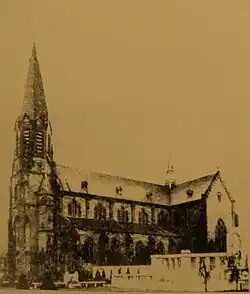 Turmfront der neogotischen Kirche im Jahr 1895 -