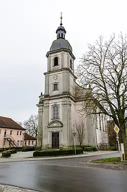 Das erste Gotteshaus wurde 1301 durch Graf Mangold von Wildberg gestiftet. Dieser erste Kirchenbau wurde wegen Baufälligkeit zwischen 1719 und 1726 abgebrochen. Nach Plänen von Johann Georg Danzer errichtete den Neubau Johann Georg Bierdümpfel mit Steinen des Vorgängerbaus. Die neue Kirche wurde 1731 geweiht.
