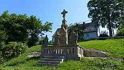 - Kreuzigungsgruppe auf dem Dorfplatz, geschaffen 1860 vom Bildhauer I. F. Pfeifer aus Starkstadt.