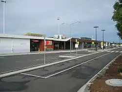 Vor dem Terminal des Hobart International Airport haben diverse Autovermieter Mietwagen stationiert.[52]
