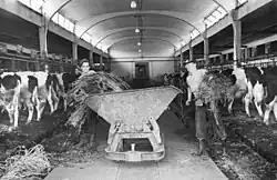 Nach dem Zweiten Weltkrieg wurden die Kipploren auf der Berliner Trümmerbahn eingesetzt und die Anlagen in Hobrechtsfelde und Lobetal-Albertshof getrennt voneinander weiterbetrieben, in Hobrechtsfelde ausschließlich für Futter- und Dungtransporte. Die Modernisierung der in die Jahre gekommenen Stallgebäude mit Futterbändern, Abflusskanälen, Güllewagen und moderner Kälberaufzuchtstation machte Mitte der 1970er Jahre den Betrieb der Gleisanlagen des nun volkseigenen Gutes unrentabel.[4][8]