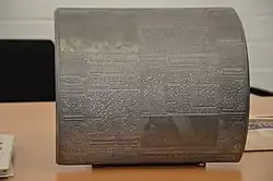 Eine Art des Hochdrucks ist der Stempeldruck. Die ersten bekannten Stempel stammen aus dem Alten Orient. Im Altertum waren es vor allem die Materialien Ton oder Wachs, in die die Stempelformen gedrückt wurden. Die ältesten Drucke waren Präge- bzw. Blinddrucke ohne Druckfarbe. Ein bekanntes mittelalterliches Beispiel für den Druck in Ton ist die Prüfeninger Weiheinschrift von 1119.[1]