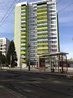 Das Hochhaus Bugginger Straße 50 in Freiburg im Breisgau ist das erste energetisch sanierte Passivhochhaus der Welt.[1][2] Bei dem 45 Meter hohen Gebäude handelt es sich um 16-stöckiges Hochhaus mit einer Wohnfläche von rund 7.000 m², welches im Jahr 1968 im Stadtteil Weingarten errichtet und in den Jahren 2009 und 2010 saniert wurde. Es gehört heute der städtischen Wohnungsbaugesellschaft Freiburger Stadtbau (FSB).[3]