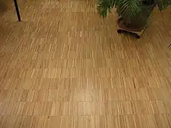 Hochkantlamellenparkett[1], auch Industrieparkett genannt, ist eine Variante von Mosaikparkett[2]. Es besteht aus etwa 8 mm breiten und hochkant liegenden Holzstäben („Lamellen“), die parallel zueinander auf einem Grundträger zusammengeleimt werden. Im Gegensatz zu Mosaikparkett sind die Stäbe aber nicht nach einer bestimmten Optik („rustikal/vital“, „natur/trend“, „select“) ausgewählt, sondern es können auch Astlöcher, Verfärbungen usw. auftreten, ohne dass dies als Mangel zu sehen ist. Geliefert und verlegt wird in vorgefertigten Verlegeeinheiten mit durchlaufenden Kopf- und Längsfugen. Die Nutzschicht ist 10 bis 25 mm stark. Die Parkettart gilt als robust und unempfindlich auch gegen stärkere mechanische Stöße. Es wird daher als belastbare Alternative in Kindergärten, Schulen, Gaststätten und Produktionsanlagen eingesetzt.[3]