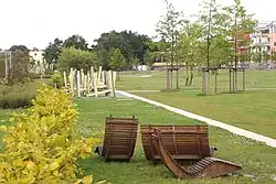 Südlich des Parks befinden sich vorwiegend Einfamilienhäuser, nördlich der Parkanlage der Technologiepark Innovations-Campus Lübeck, ein gemischtes Wohn- und Gewerbegebiet sowie Reihenhäuser und das für wissenschaftliche Forschung genutzte Multifunktions-Center.