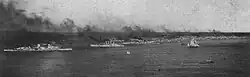 - ↑ Ellery H Clark / Klaus Jürgen Müller: Der Erste Weltkrieg: Die Operationen zu Beginn des Krieges. In: Elmar Potter / Chester Nimitz / Jürgen Rohwer (Hrsg.): Seemacht: Eine Seekriegsgeschichte von der Antike bis zur Gegenwart. Pawlak: Herrsching 1982, S. 345. ISBN 3-88199-082-8.