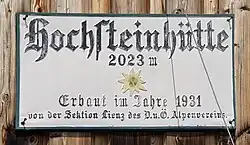 | Hochsteinhütte ÖAV-Schutzhütte Kategorie II | ||