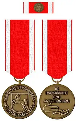 - ↑ Beschluss der Landesregierung vom 26. November 2002 über die Stiftung einer Hochwasser-Medaille 2002, Niedersächsisches Ministerialblatt Nr. 53 vom 5. Februar 2003 Artikel II
