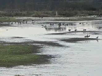 Das Naturschutzgebiet dient einer Vielzahl von Vögeln als Nahrungs-, Rast- und Brutgebiet, darunter Wasser- und Watvögel und röhrichtbewohnende Vogelarten. Die extensiv genutzten Feuchtgrünländer des Reservebeckens haben besondere Bedeutung für Wiesenbrüter. Das Gebiet ist Lebensraum unter anderem für Graugans, Höckerschwan, Reiherente, Hauben-, Schwarzhals- und Zwergtaucher, Großer Brachvogel, Kiebitz, Flussregenpfeifer, Pirol, Teichrohrsänger und Rotmilan, die alle auch hier brüten. Der See im Reservebecken beherbergt eine Kormorankolonie.[4][5] Seit 2019 ist auch der Seeadler im Gebiet heimisch.[6] Das Gebiet hat auch besondere Bedeutung als Rast- und Überwinterungsgebiet für Wasservögel, darunter verschiedene Schwäne, Gänse, Enten, Taucher und Säger.