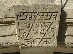 Das rituelle Zerbrechen eines Glases bei jüdischen Hochzeiten ist ein heute noch allgemein gelebter Brauch zur Erinnerung an den zu Jerusalem verwüsteten Tempel. Die Hochzeitsgesellschaft ruft „Masel tov“, was übertragen „viel Glück“, wörtlich jedoch „guter Stern“ bedeutet. Hochzeitssteine zeigen daher üblicherweise einen Stern (Magen David), häufig im Zentrum die Buchstaben MT für Masel Tov (מט für מזל טוב). Weitere übliche (z. T. abgekürzte) Beschriftungen stammen aus Jeremia 7,34 () und 33,11 (): Stimme des Jubels und Stimme der Freude, Stimme des Bräutigams und Stimme der Braut (קול ששון וקול שמחה קול חתן וקול כלה).