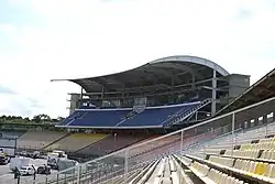 - Feste Tribünen: LBBW-Haupttribüne, Nordtribüne, Südtribüne, Innentribüne, Mercedes-Tribüne