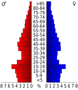 29,1 Prozent der Bevölkerung waren unter 18 Jahre alt, 11,8 Prozent zwischen 18 und 24, 25,9 Prozent zwischen 25 und 44, 20,6 Prozent zwischen 45 und 64 und 12,6 Prozent waren 65 Jahre alt oder älter. Das Medianalter betrug 33 Jahre. Auf 100 weibliche Personen kamen 96,3 männliche Personen und auf 100 Frauen im Alter von 18 Jahren oder darüber kamen 92,2 Männer.