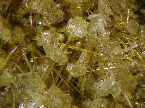 Hoelit (chemisch Anthrachinon) ist ein selten vorkommendes Mineral aus der Mineralklasse der organischen Verbindungen. Es kristallisiert im monoklinen Kristallsystem mit der chemischen Zusammensetzung (C6H4)2(CO)2 und entwickelt feinnadelige, teilweise pseudo-orthorhombische Kristalle im Millimeterbereich von gelber bis gelbgrüner Farbe.[4]