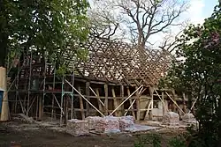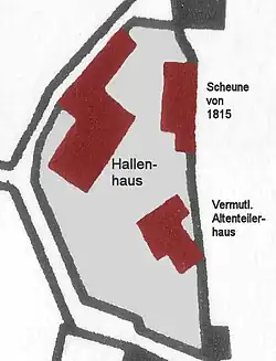 Giebelseite der Scheune von 1815, Zustand vor dem Abtragen des Gebäudes -