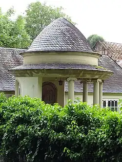 1912 bis 1915 baute er den Apothekenneubau, ließ 1921 bis 1922 das Wohnhaus umbauen und 1925 das Hinterhaus abreißen um den Apothekengarten anzulegen.
