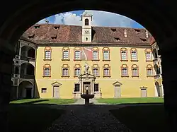 Im Wohntrakt von Bischof Lodron ließ dieser um 1800 einen Betraum einrichten, von dem noch geschnitzte Supraporten mit der Anbetung der Hirten und hl. Drei Könige sowie ein Verkündigungsrelief oberhalb des Kamins erhalten sind. Der Kamin selbst ist aus der Zeit von Andreas von Österreich und trägt in der schönen Marmoreinfassung sein Wappen.